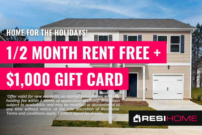 Applications are approved on a first-come, first-served basis. Home availability dates are subject to change. Avoid rental fraud (we do NOT list on Craigslist, Facebook Marketplace, or Instagram). Renderings and/or photos may not represent actual property. Fireplace, if applicable, is decorative only. Please contact a ResiHome leasing agent to schedule a showing or for more details.